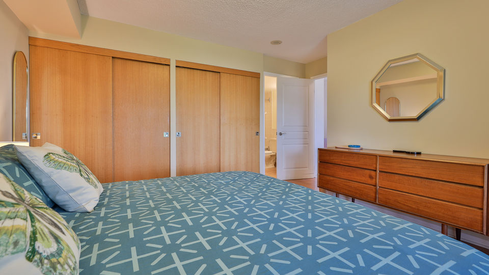 Inside you will find a huge living area with authentic vintage MCM decor that walks out to a balcony overlooking the park. The kitchen is small but mighty and well stocked.