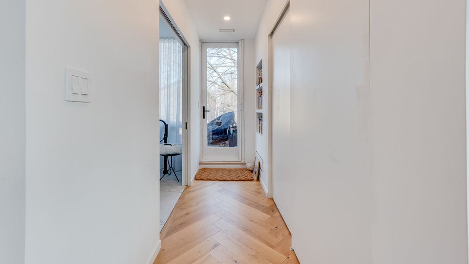 Full of light this two storey loft like home on the top floor of a duplex offers wonderful open spaces and lush green views. The gorgeous custom kitchen steps features corian counters and waterfall island. The spacious living room uses a drop down screen for projector tv! Great for movie nights! Upstairs you will find a large primary with spa like ensuite. Two outdoor decks amongst the trees provide private outdoor space.