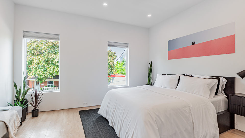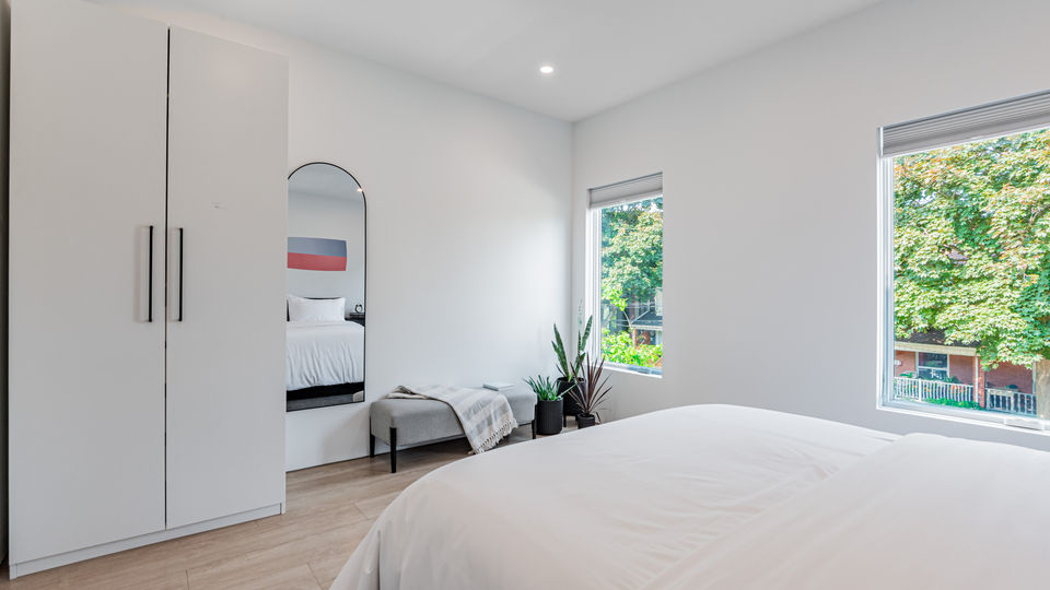 Fantastic upper suite in the heart of Trinity Bellwoods. Streamlined, modern decor is bathed in natural light. The kitchen and dining area are open and breezy and flow to the living area that steps out to a generous deck. The bedrooms feature crisp linens and the shared bathroom offers a double shower and sleek marble accents. Steps to Trinity Bellwoods Park, the location is unbeatable!