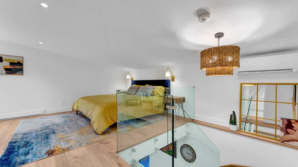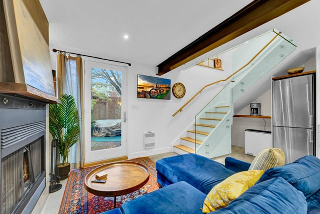 Tucked away at the rear of one of the Grand Homes of Rusholme Road, this two storey hideaway is a one bed one bath private escape that feels like a cabin in the woods! The suite features a wood burning fireplace in the living room that opens out to a private courtyard at the back.