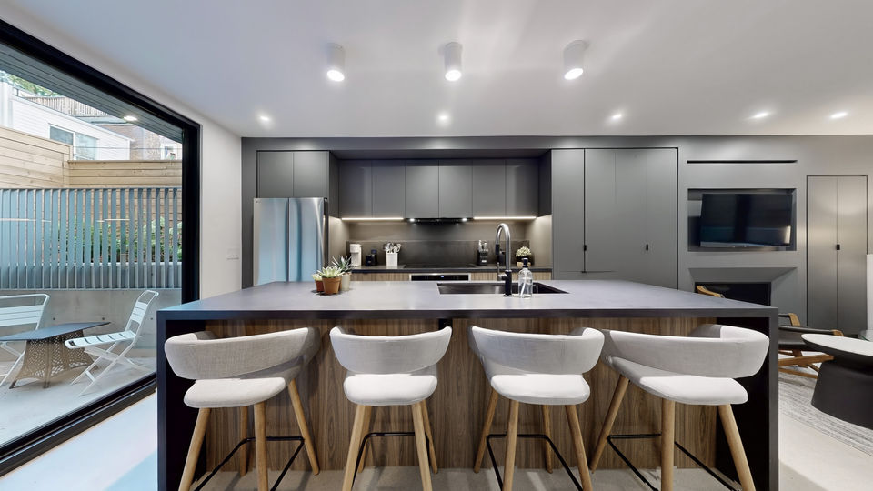 This brand new laneway house is tucked behind a cluster of townhomes and offers great privacy. The cozy light filled living area features a gas fireplace and flows to the beautifully designed kitchen with custom counters, cabinetry and stainless appliances. Step outside the floor to ceiling sliding doors to a large patio. Upstairs you will find two generous bedrooms with ample storage and two baths.
